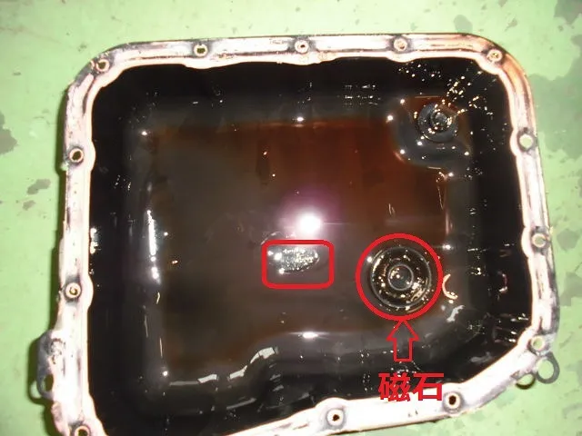 清掃後、マグネットの置き場所は決まってますのでオイルパンの定位置に!! AT本体側も出来る範囲で清掃を。