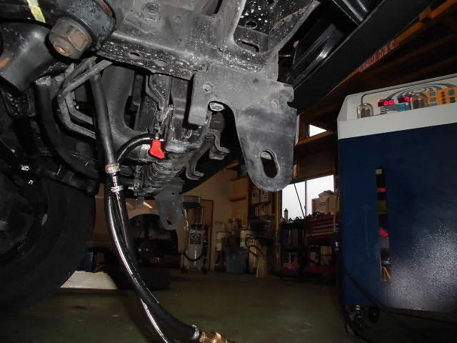 片方のクーラーホースを外してトルコン太郎の配管をバイパス