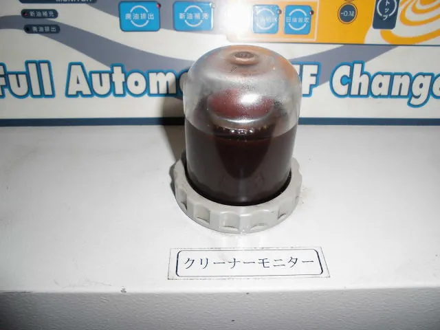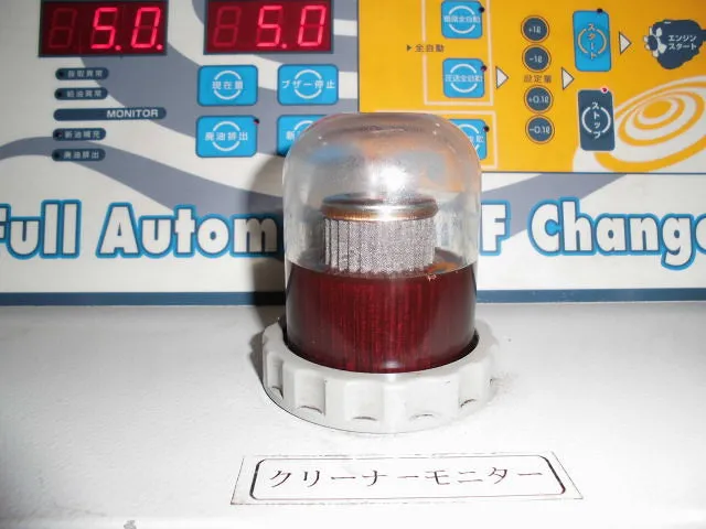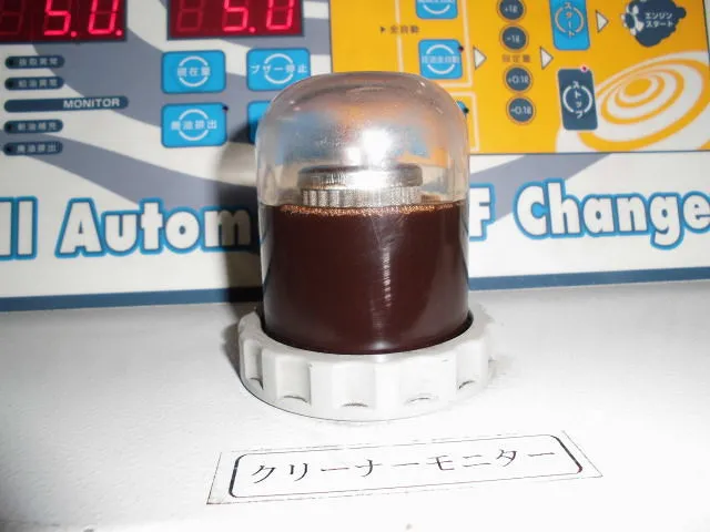 まずは、5.0リットル交換後、クリーニングモードへ!! 左はクリーニングモード中の写真で、黒っぽかったオイルの色がかなり取れました。スラッジはクリーナーモニター内のフィルターでしっかりとキャッチ。