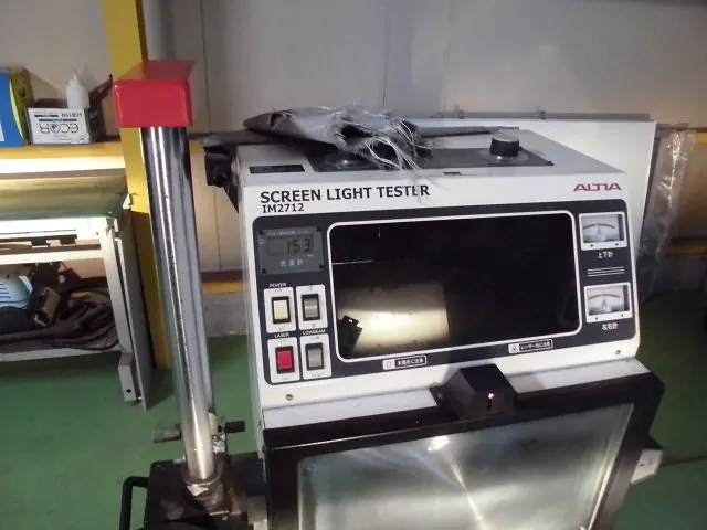 こちらのMRワゴンは義理の母が使用してまして、最近勤務先の方からヘッドライトを磨いていただいたそうです。全然これで問題はないのですが、市販のコーティングで施されたヘッドライトと、当社のコーティングの違いを検証してみました。コーティング作業前にヘッドライトの光度を測ってみました。ライトテスター中央のスクリーンにヘッドライトの光の映像が映し出されていて、カットラインもでています。テスター左上の数字は、ヘッドライトの光度になります。光度は左11600カンデラ、右9900カンデラで保安基準に合格です。保安基準の合格ラインは、6400カンデラです。